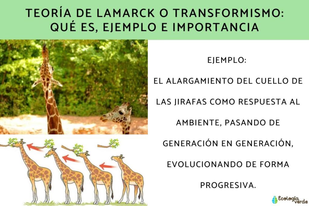 | Lamarckiana | Herencia de caracteres adquiridos | Esfuerzo del organismo | Jirafas estiran sus cuellos para alcanzar hojas; este estiramiento se hereda. | Científicamente desacreditada en la herencia de caracteres adquiridos. |